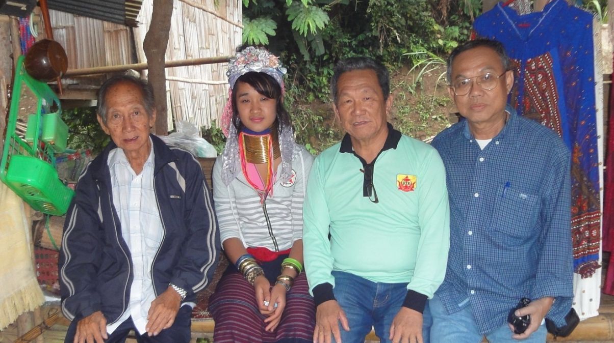 左起海庭,克伦族长颈女孩,孙德安,无极人 合影