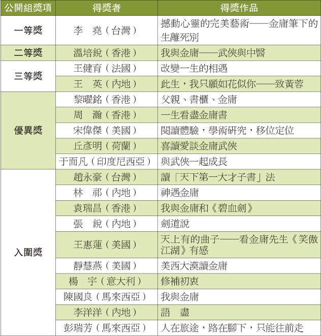 「我与金庸——全球华文散文徵文奖」,2016年7月23日在香港书展中公布获奖名单,并同时举行颁奖典礼。