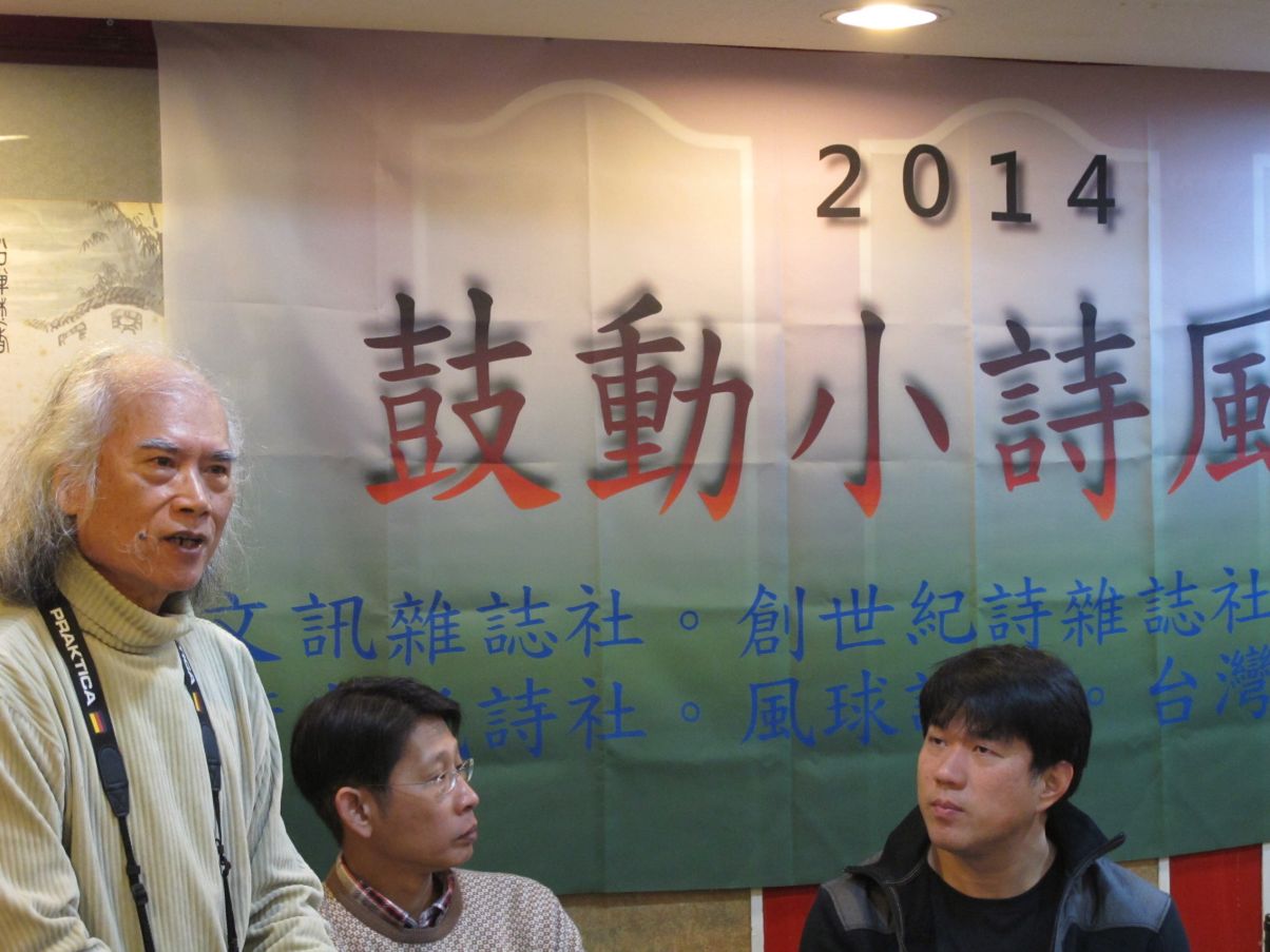 《臺灣詩學季刊社》2013年12月29 日中午,在台北羅斯福路北京樓舉行「第三屆大學院校詩學研究獎」頒獎會及《吹鼓吹詩論壇》年度叢書三本詩集新書發表會;詩學研究獎三位社外評審:洪淑苓(臺大)、須文蔚(東華)、林盛彬(淡江)教授。得獎名單如下:陳柏伶博論(清大)《先射,再畫上圈--夏宇詩的三個形式問題》、夏婉雲博論(淡江)《臺灣詩人的囚與逃──以商禽、蘇紹連、唐捐為抽樣》。 三本《吹鼓吹》叢書主編蘇紹連,作者:蘇善、蘇家立、范家駿。會中同時宣布,由白靈鼓吹籌劃2014年為台灣現代詩壇大聯合《鼓動小詩風潮》,邀集加盟的六個單位,包括:《創世紀》、《臺灣詩學》、《乾坤》、《風球》、《衛生紙》五個詩社及《文訊》雜誌社,並請各單位代表:辛牧、蕭蕭、林煥彰、楊智傑、鴻鴻、封德屏合影,會中並請林煥彰就「小詩磨坊」多年來在東南亞各國及台灣宜蘭推展的情形和成績(已出版十餘本六行以下的詩集)做了簡報;其後協議決定各單位各自規劃,在年度中陸續推出「小詩專輯」,分進合擊,期將小詩形式推向高峰。